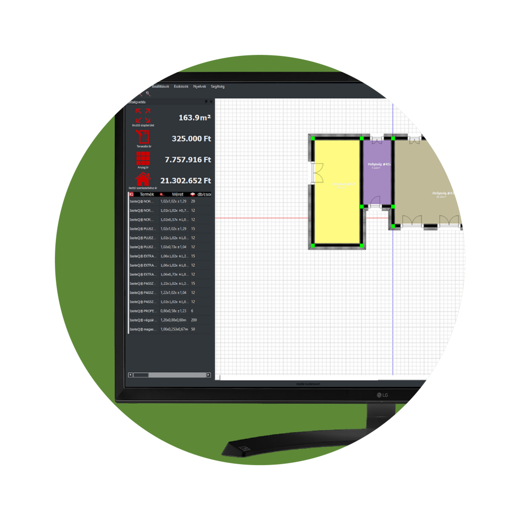 Megjegyzés: az IsoteQ Designer tervezőprogram jelenleg egyszintes épületek tervezésére és az azokra vonatkozó költségvetés kiírására alkalmas. Az IsoteQ Designerben szintenként feltüntetett tervezési- és kivitelezési árak a kétszintes IQ136-os mintaterv esetében értelemszerűen nem érvényesek.